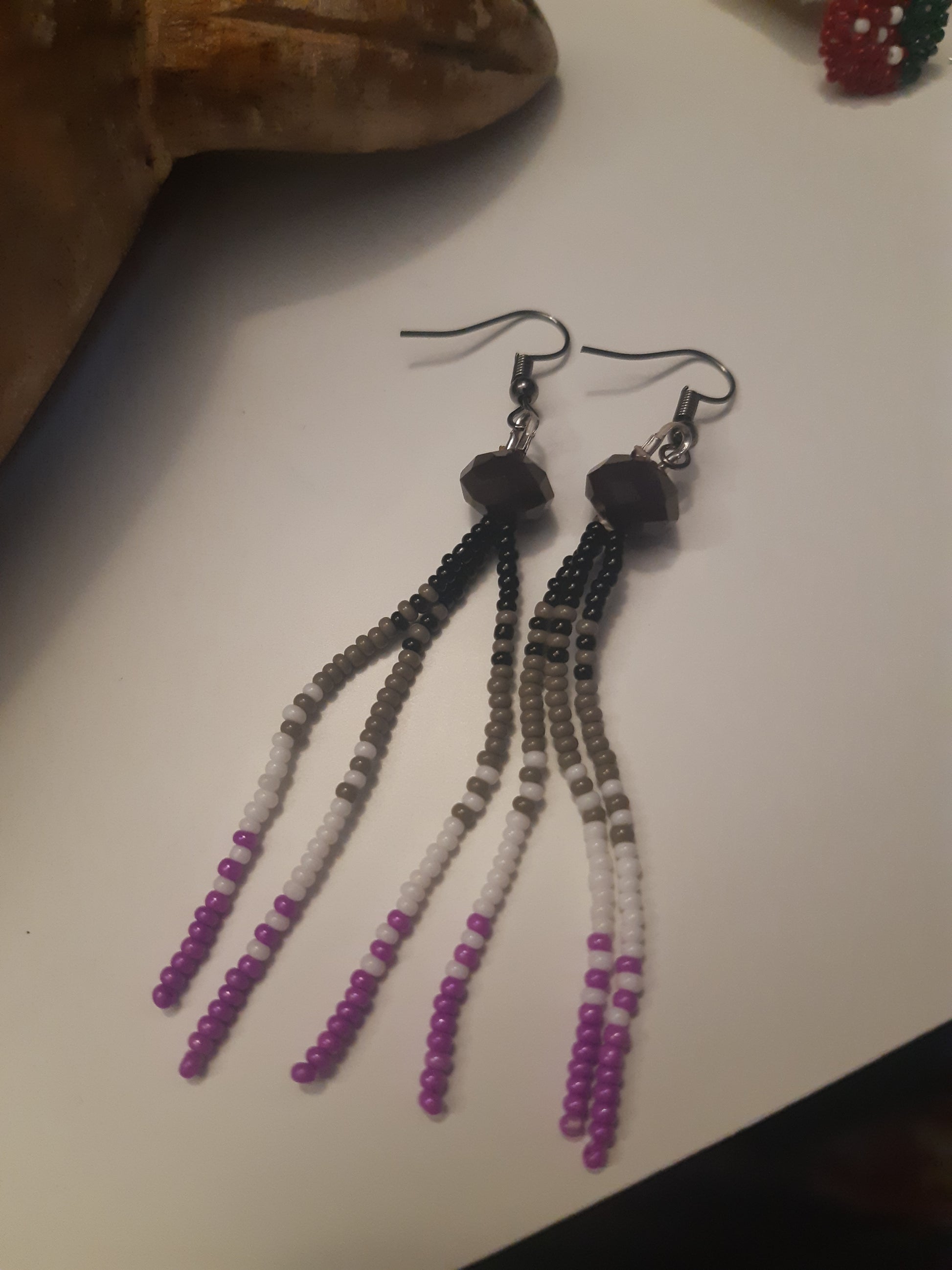 This pair is made with size 10/0 czech and miyuki seed beads, and rondelles.
